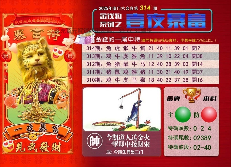 | 315期:单『牛鸡蛇羊』双『狗猴龙虎』开虎04准 | |||